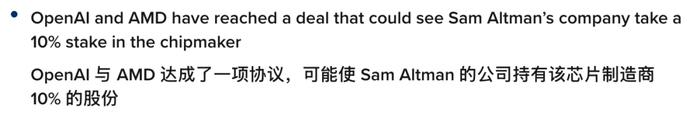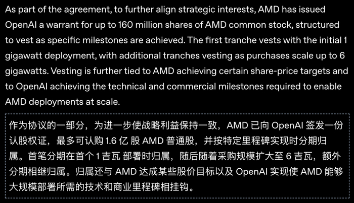 这意味着,如果该协议完全执行,OpenAI将拥有AMD 10%的股份!