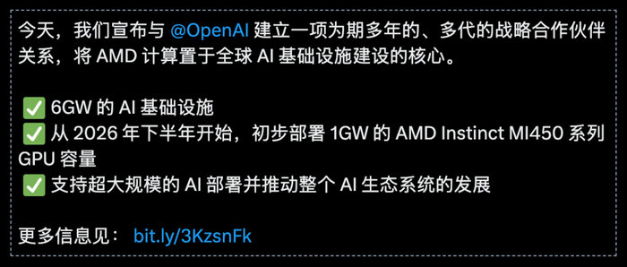 刚刚,OpenAI官宣与AMD战略合作伙伴关系,未来将部署6GW的AMD GPU!