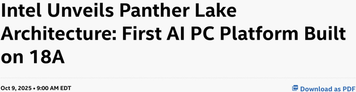 根据英特尔提供的时间表,Panther Lake首个SKU预计年底出货,并将在2026年1月全面上市。