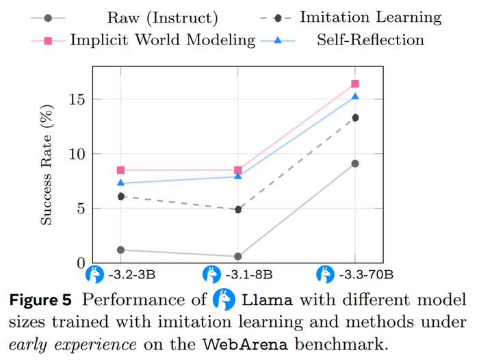 实验结果显示,引入「早期经验」后的智能体表现显著优于纯模仿学习基线。