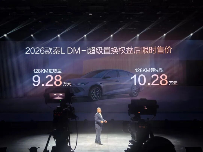 2026款秦L DM-i车长超4.8米,纯电续航128km,这次的更新有两大亮点。