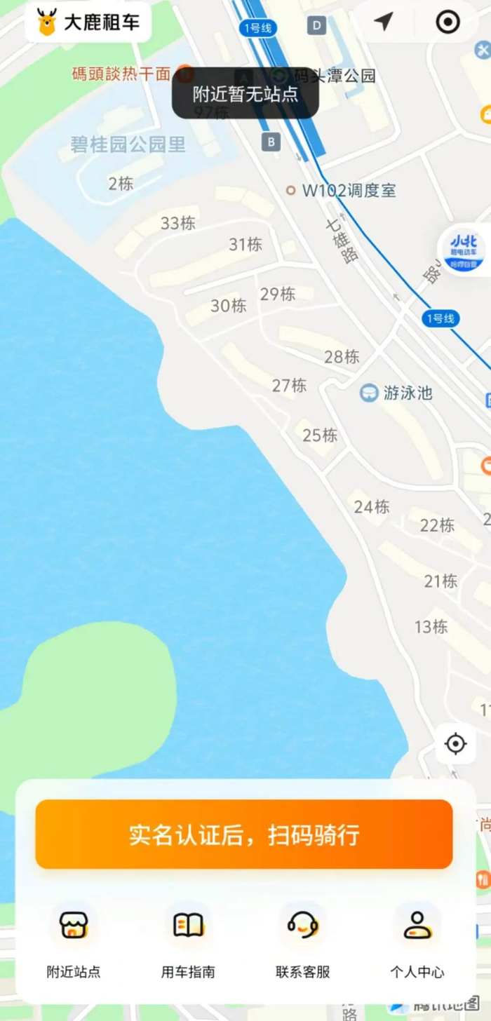 具体租赁方法也较为简单,用户需实名登录大鹿租车微信小程序,然后在地图上找到大鹿租车的站点,租车模式分为普通和闪租两种。