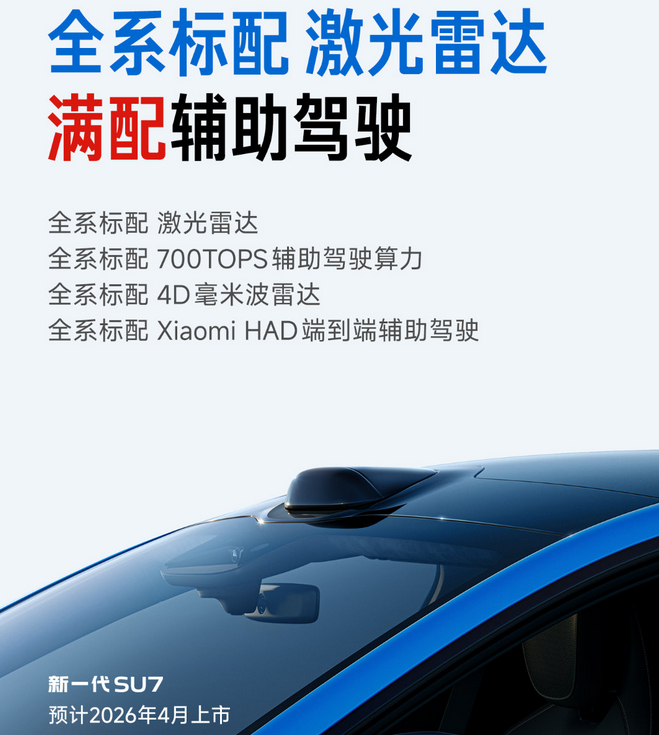 全系标配激光雷达和Xiaomi HAD辅助驾驶,三电系统、安全用料全线升级,最长续航已经达到902km……