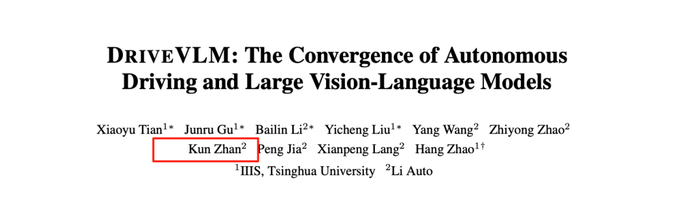 此后4年,行业发展日新月异,技术架构不断变迁。詹锟也在理想汽车经历了两次架构变革。第一次是2024年,行业集体从规则驱动转向数据驱动,理想当时推出了端到端+VLM范式,一举站上行业第一梯队。詹锟参与了背后的关键理论成果DriveVLM。