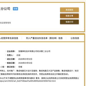 最新公开工商信息显示,蔚来全资芯片子公司安徽神玑,最近在杭州滨江区注册了第一、第二分公司,从事芯片设计和销售、软件开发和销售等业务。