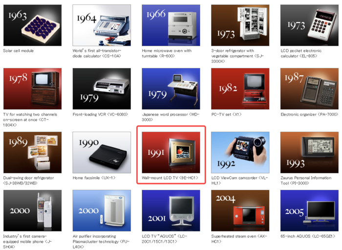 1991年,夏普发布全球首款壁挂式液晶电视9E-HC1