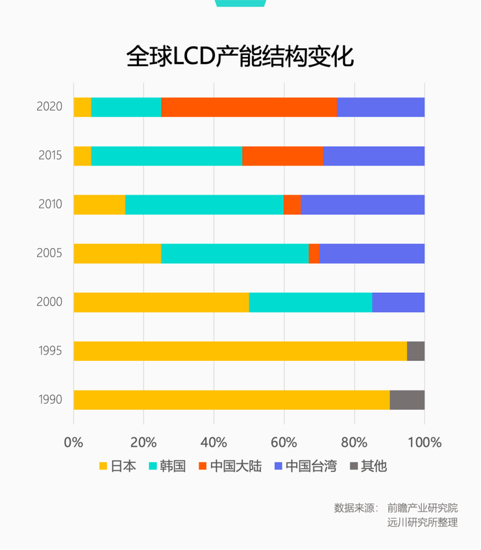 90年代初,日本四大天王包圆了全球90%以上的电视机出货,背后就是以夏普为代表的面板厂商,手握超过90%的全球面板生产份额。