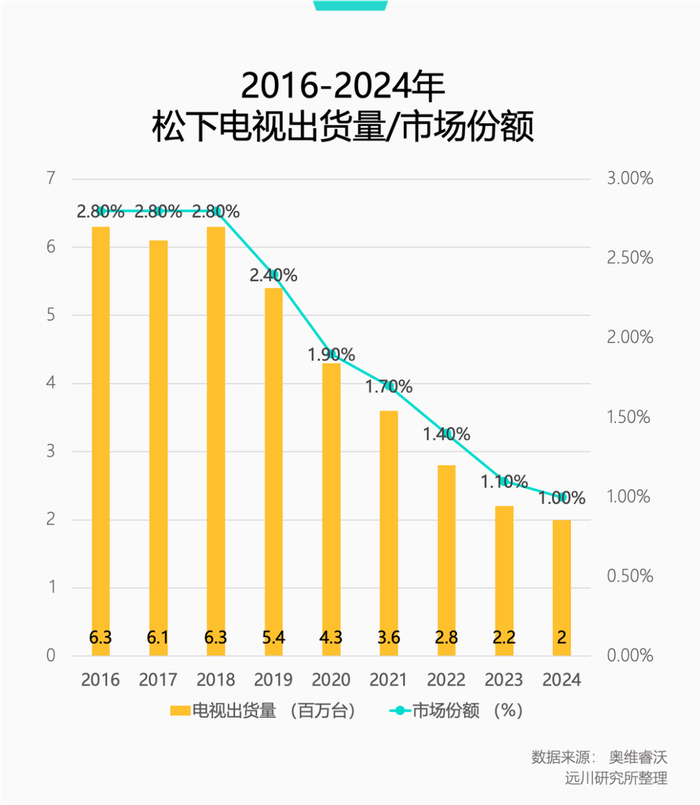 同一年,被打服的松下彻底停止等离子技术投资。十年后,松下电视在全球的市场份额已经降至1%[5],去年年初,松下宣布出售包括电视在内的边缘业务部门,但尚未有找到买家[6]。