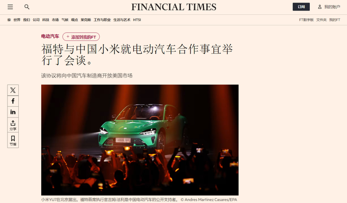 小米汽车冲击美国市场?福特被曝洽谈建厂,双方回应了