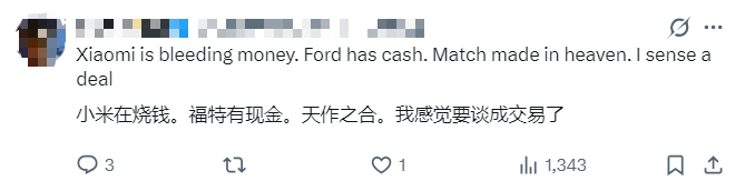 大家可能听说过,福特CEO多次盛赞小米汽车,他之前空运了一台SU7到美国不说,还自爆开了半年舍不得换。这波合作如果落地,也称得上是念念不忘必有回响了……
