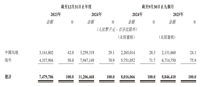 从收入区域来源来看,德业股份2025年前9个月来自中国内地的收入为21.32亿元,占比24.1%;来自海外的收入67.15亿,占比为75.9%。