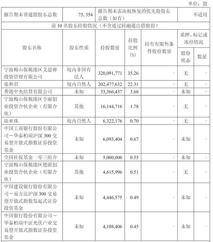 中国建设银行股份有限公司-易方达沪深 300 交易型开放式指数发起式证券投资基金持股为0.49%,中国银行股份有限公司-华泰柏瑞中证光伏产业交易型开放式指数证券投资基金持股为0.45%。