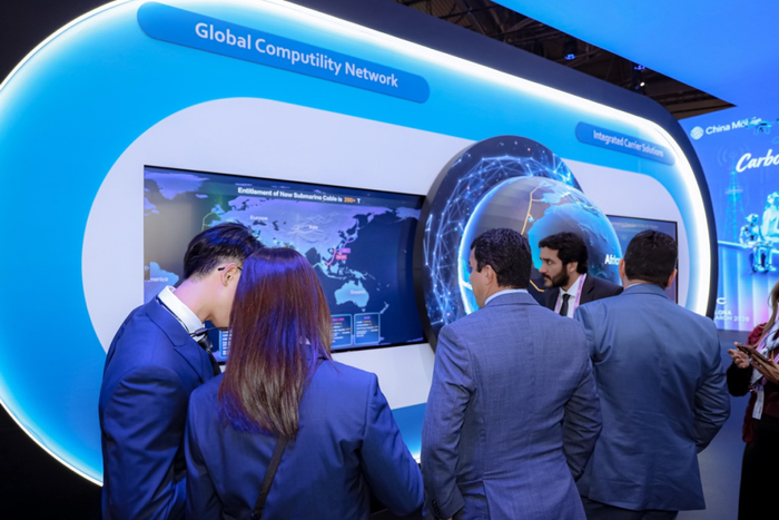 在中国移动的展区里,密密麻麻的线条横跨大洋,串起一个个登陆点。数据很硬:自有海缆27万公里,手握406T国际传输资源,连着1200多个数据中心。说白了,这就是一张覆盖全球的算力“高速公路网”。