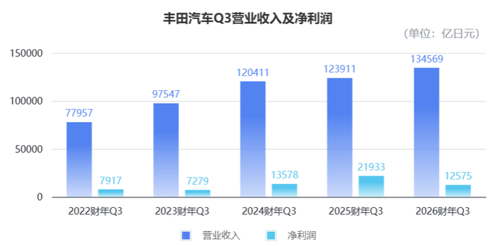 2026财年第三财季,丰田的营业收入达到13.46万亿日元(约5910亿元),同比增长8.6%,相当于每天进账64亿元。