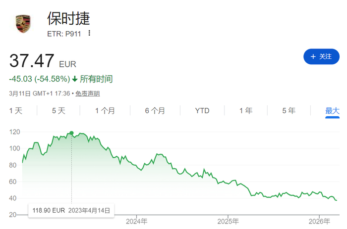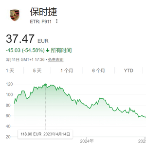 就连保时捷的股价,都较刚上市时腰斩,跌到只有三年前最高点的1/3了……