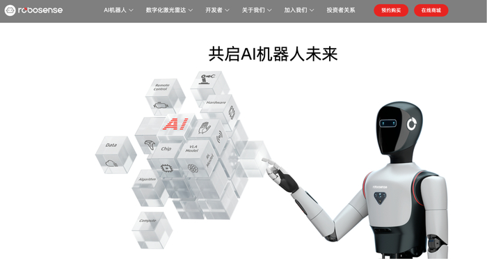 这也是为何速腾的官网主页,已经自定位为AI驱动的机器人技术公司: