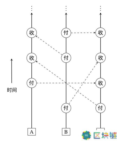也就是,每笔交易会产生两个区块,一个是在出款账户链上,一个是在收款账户链上。