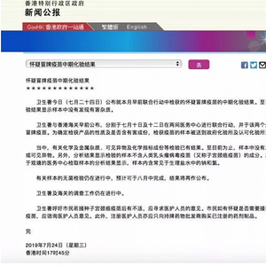 ▲ 关于怀疑冒冒牌疫苗中期化验结果的通报。(香港特别行政区政府一站通官网截图)