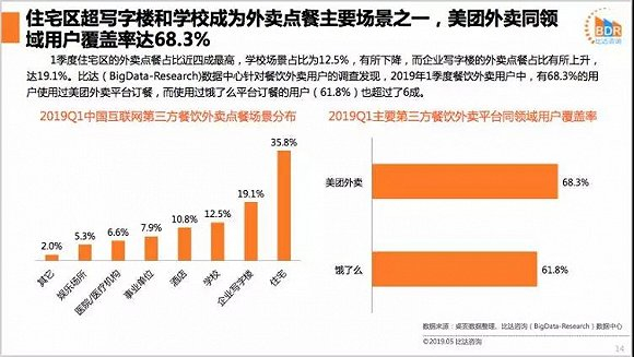 今年5月,第三方数据挖掘及市场研究机构比达(BigData-Research)提供的数据显示,在餐饮领域,美团外卖的占比达到68.3%,使用饿了么平台订餐的用户也在61.8%。