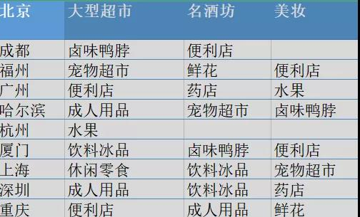 从2019年1月到2019年7月,饿了么口碑通过追踪发现,晚上22点至早上9点之前,全国酒吧的非餐订单占比高达24%,是整体占比的近两倍!在全国范围内,各个酒吧都有夜间点单的需求,每个城市的偏好还不相同: