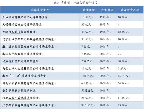 实体项目非法集资与前两种非法集资套路相似,只是投资标的不同。实体项目非法集资表面假借实体项目进行融资,但实体项目的资质往往是包装出来的,金玉其外败絮其中。实体项目非法集资具有案件多发、涉案规模大、涉及投资人数多的特点,曾经骇人听闻的蚁力神案、吴英案、小姑娘案、鄂尔多斯非法集资案等均在此列。