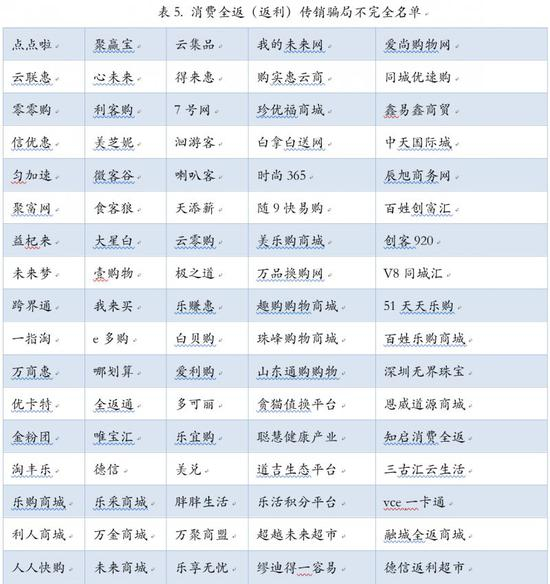 消费返利原本是一项常见的促销手段,如今却经常被包装成投资骗局。其主要特征是:通过互联网第三方平台介入商家和消费者的交易过程,许诺在平台的消费额度部分返回,或通过现金消费送等额积分等形式,诱导消费者注册会员消费和商家加盟平台回流货款。截至2017年7月,已有150余家“消费返利”传销骗局名单被央视曝光。