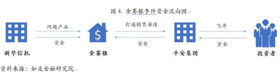 其中涉案规模最大,最为引人注目的是金赛银基金事件。2015年10月,深圳金赛银基金管理有限公司陷入60亿元兑付危机中,金赛银负责人王维奇跑路,客户的几十亿资金无处追讨,无处申诉;而平安人寿被曝由其业务员向客户兜售的巨额金赛银理财产品无法兑付。通过高档豪华会所装门面、拉拢政府官员打着政府项目的旗号推销、打平安保险担保的幌子、宣传公司挂牌上海股交中心等方式,金赛银公司吸引了大量投资者购买其理财产品,但这些钱实则进入了王维奇的个人私款。这一事件的背后,存在着一条“有毒资产”转嫁链条:信托公司把信托贷款、债权等问题产品转给第三方私募接盘;私募公司金赛银通过动员平安员工“接飞单”等方式,打通了平安集团的销售渠道,募得巨额资金,最终挪作它用,导致原本就存在问题的资产链条断裂。
