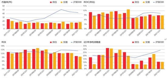 某大型基金公司的“成长优选”基金,名称上看应为成长风格,其投资策略也载明了“投资于成长型上市公司股票”。该基金自2017年以来由一位价值风格的老将接管之后,基金的实际全持仓股票风格更偏向价值,相较于沪深300,持有个股的PE长期偏低,代表成长性的指标ROIC、ROE、利润增速等均长期较低。