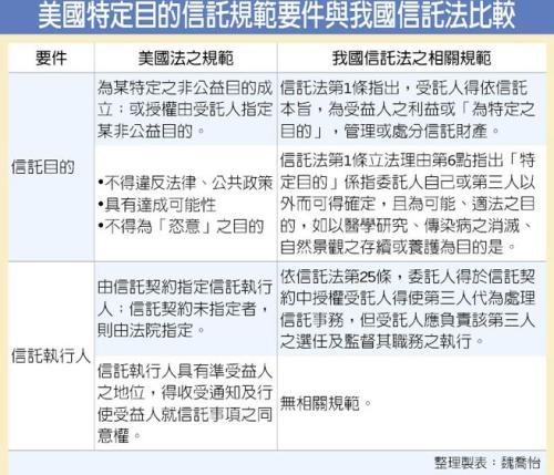 吕蕙容指出,信托公会近年来在积极推动家族信托相关事务后发现,国外家族信托多以特定目的信托(purpose trust)架构办理,但国内‘特定目的信托’有所限制,导致无法发展。