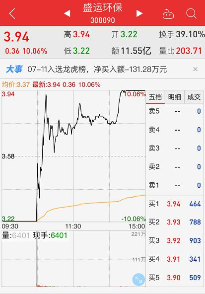今日,盛运环保的最低价为3.22元,最高价为3.94元,成交均价为3.35元。