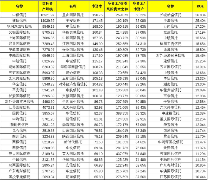 其中,净资本在10亿元以下的有2家,分别为长城新盛信托和华宸信托。