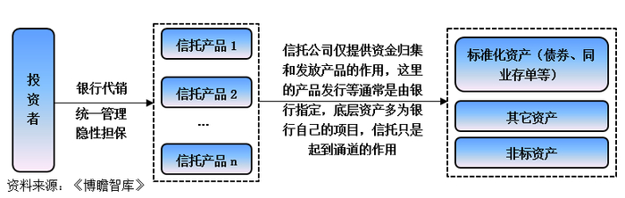 这种模式下,银行代销不同期次、滚动发行的信托产品,并负责这些信托产品的统一管理,信托公司在这里仅起到提供资金归集和发放产品的作用,是一个事务管理型信托,但存在责任划分不清的问题。
