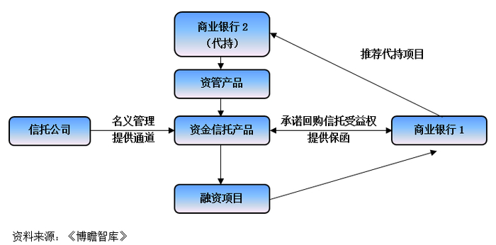5、以资金信托方式为银行代持他行资产提供通道便利