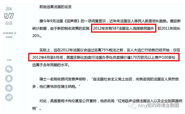仅2012年当年,就有3.5万人从法国离境去国外定居,其中有587名是被“富人税”覆盖的法国人。