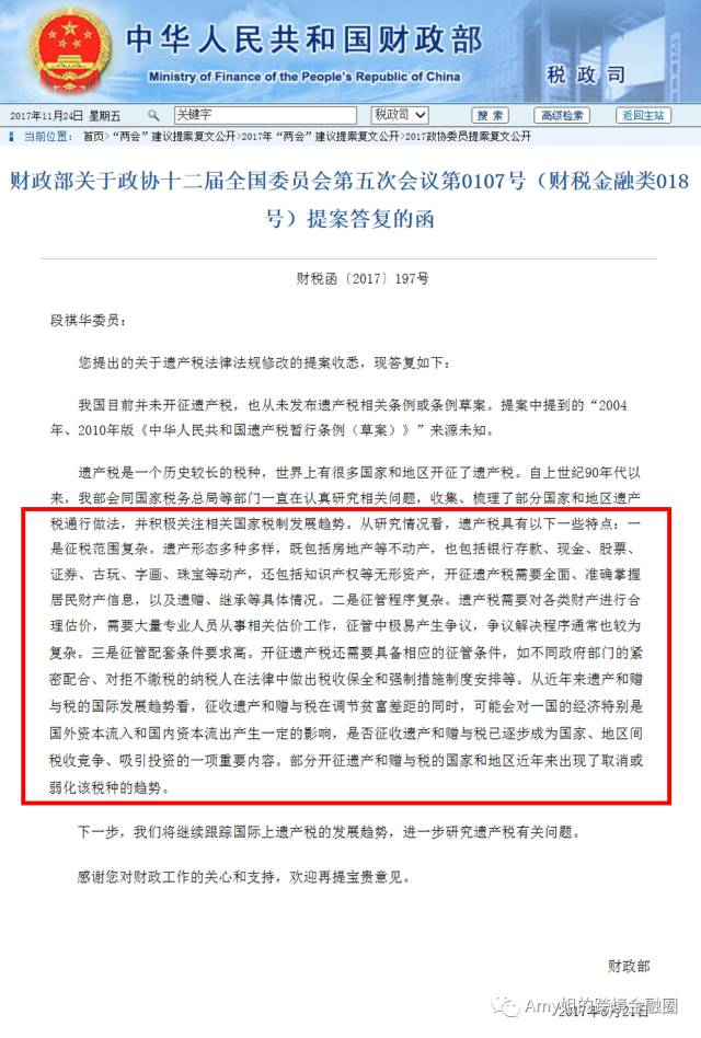 因为,本来政府征收遗产税主要目的就在于增加财政收入,缩小贫富差距,