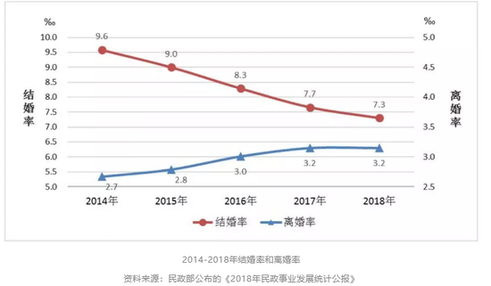 2019年8月份,民政部公布的《2019年2季度民政统计数据》显示,全国共办理498万对结婚登记,与此同时,办理了203.8万对离婚登记,离结婚比达到40.92%。按照民政部每年公布的民政事业统计公报,登记离婚率已经从2010年的2‰逐年上升到2018年的3.2‰,而且趋势仍然向上。笔者在从业过程中,也遇上过担忧自己孩子将来婚姻风险的高净值人士,对没有任何财富管理结构安排的高净值人士或其孩子来讲,婚姻变故带来的财产分割会产生很严重的后果。