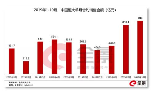 十一“黄金周”期间,以恒大、碧桂园为代表的大型房企集中降价促销,频频刷屏。使得2019年10月,恒大实现销售903亿元,同比大增70.2%,连续2个月创单月销售历史最高纪录。
