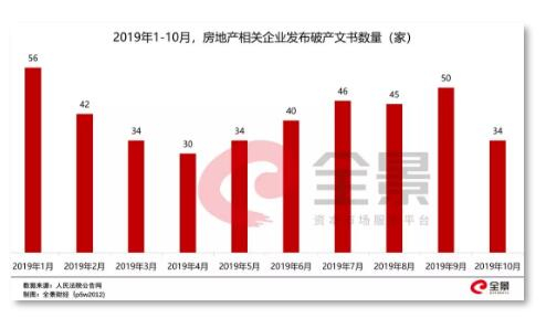 2019年以来,全国已经出现多起房地产相关企业破产的案例。通过人民法院公告网查询,截至到10月31日,2019年已宣告破产的房地产相关企业数量超过400家。
