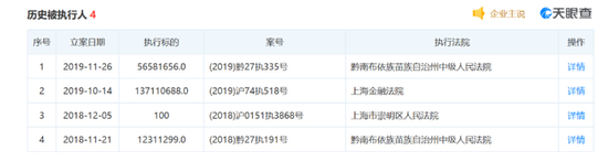 天眼查显示,贵州清水江城投目前情况不容乐观,该公司4次成为被执行人,最新一次被执行的金额是5658万元。中国裁判文书网还显示,北京市西城区人民法院裁定,应中国环球租赁有限公司申请,查封、扣押、冻结贵州清水江城投名下价值5000万元的财产。