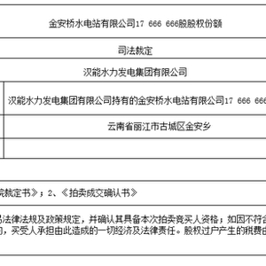 新浪财经讯 12月24日消息,今天上午,汉能控股集团有限公司持有的金安桥水电站有限公司17666666股股权份额拍卖成功。此次拍卖的评估价是1547.229684万元,起拍价1083.060779万元,最后成交价4278.060779万元。买受人是四川信托有限公司。