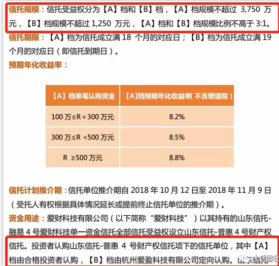 回到普惠4号,该项目设立一个财产权信托募集资金,而这个项目的合作方,正是爱财集团。