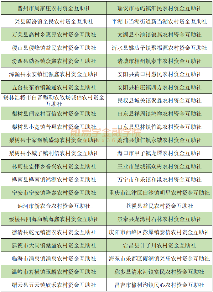 农村资金互助社44家: