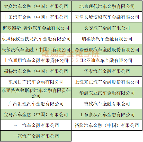 汽车金融公司25家: