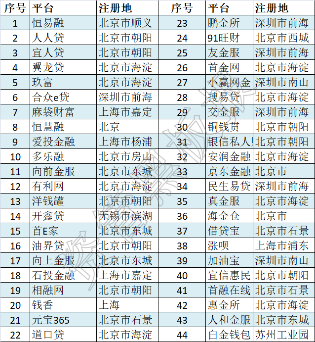 互金平台44家;