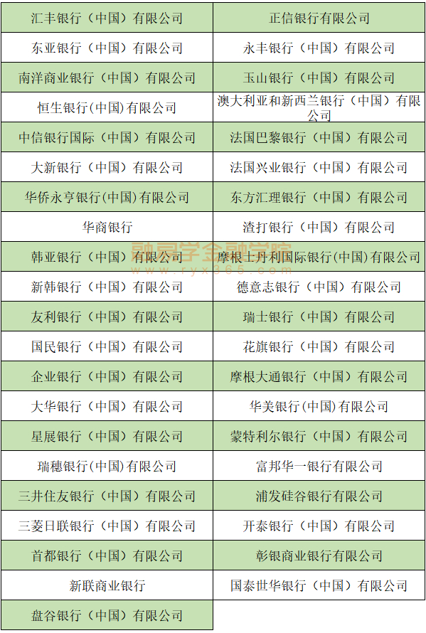外资法人银行41家: