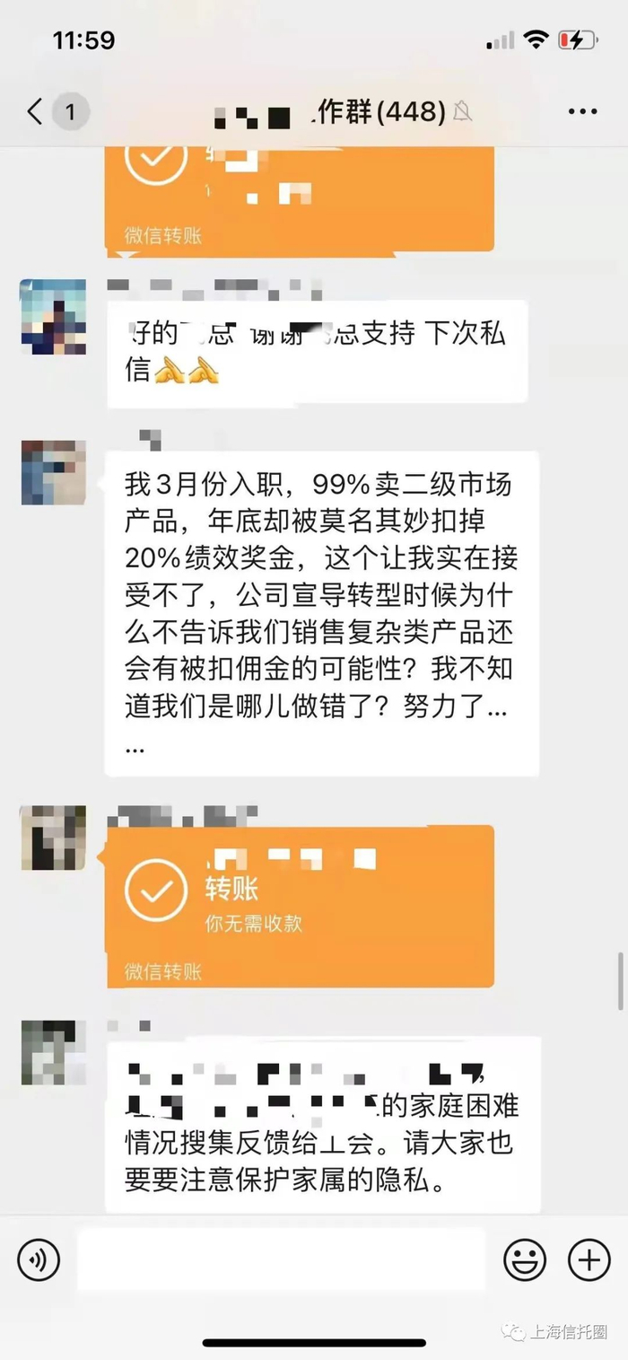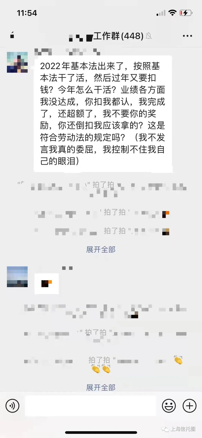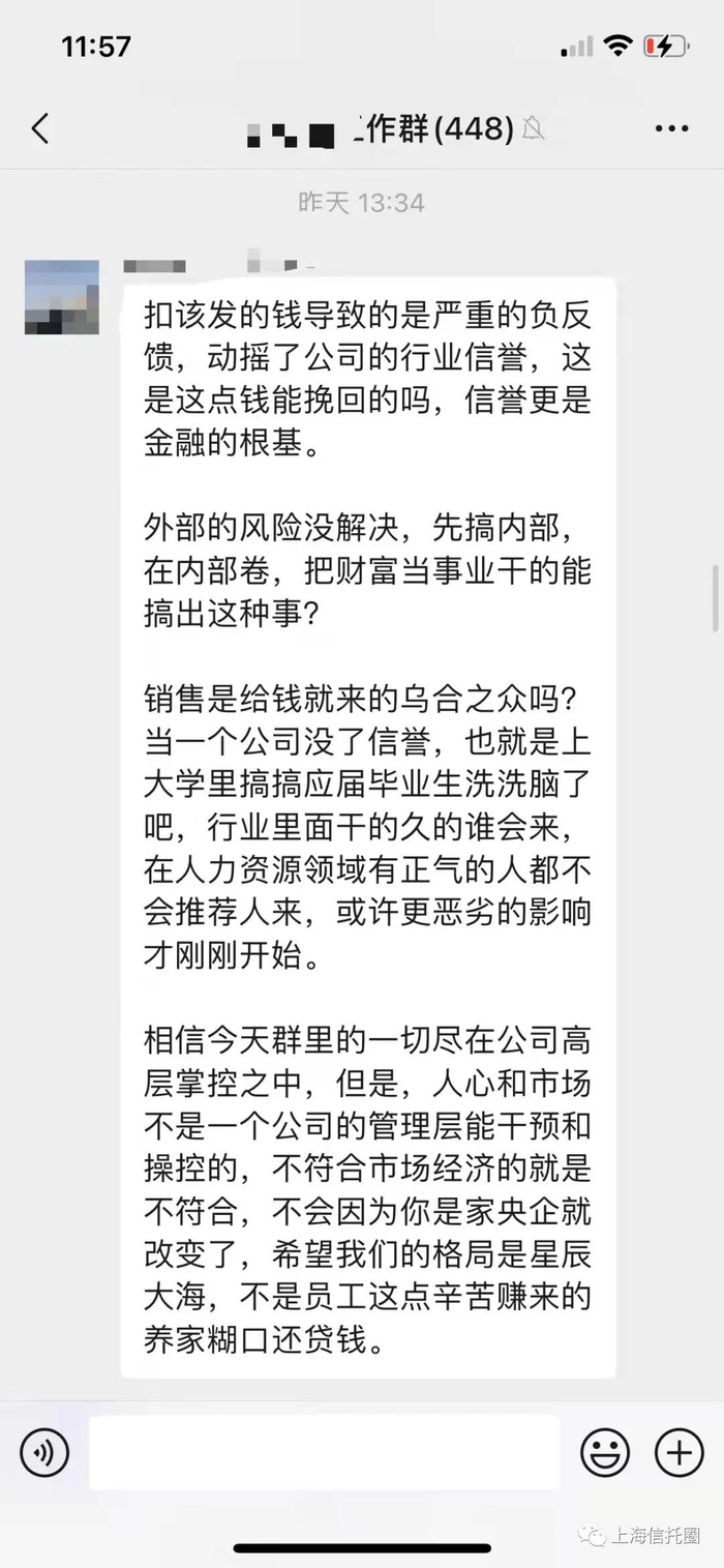 另外,该公司员工爆料时我们还是选择了隐去该公司名字,也是希望该公司能在开年之际处理好员工的薪酬问题,既然承诺了员工的绩效提成,希望还是要守信,毕竟信托行业信用第一位!