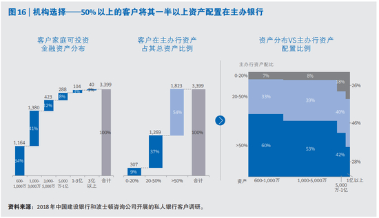 与此同时,客户和金融机构的紧密度也体现在客户的资金分配上。如果私行机构取得了客户的信任,则可以获得更大的客户钱包份额。调研样本中,50%以上的客户将其一半以上的个人可投金融资产配置在主办金融机构(参阅图16)。