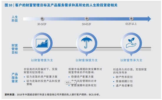 新浪财经讯 近日,中国建设银行携手波士顿咨询公司(BCG)发布《中国私人银行2019:守正创新 匠心致远》。报告表示,,中国财富市场的客户行为特征和需求正在发生结构性变化,“50”成为一个高净值客户特征分布比例的高频词。2018年调研显示,样本中近半数高净值客户已经迈过了50岁的门槛,这表明高净值人群的主体已经进入了财富管理生命周期的新阶段,其主要的理财需求正由追求财富快速增长转向追求财富的稳健、保值,以及财富的有序传承。
