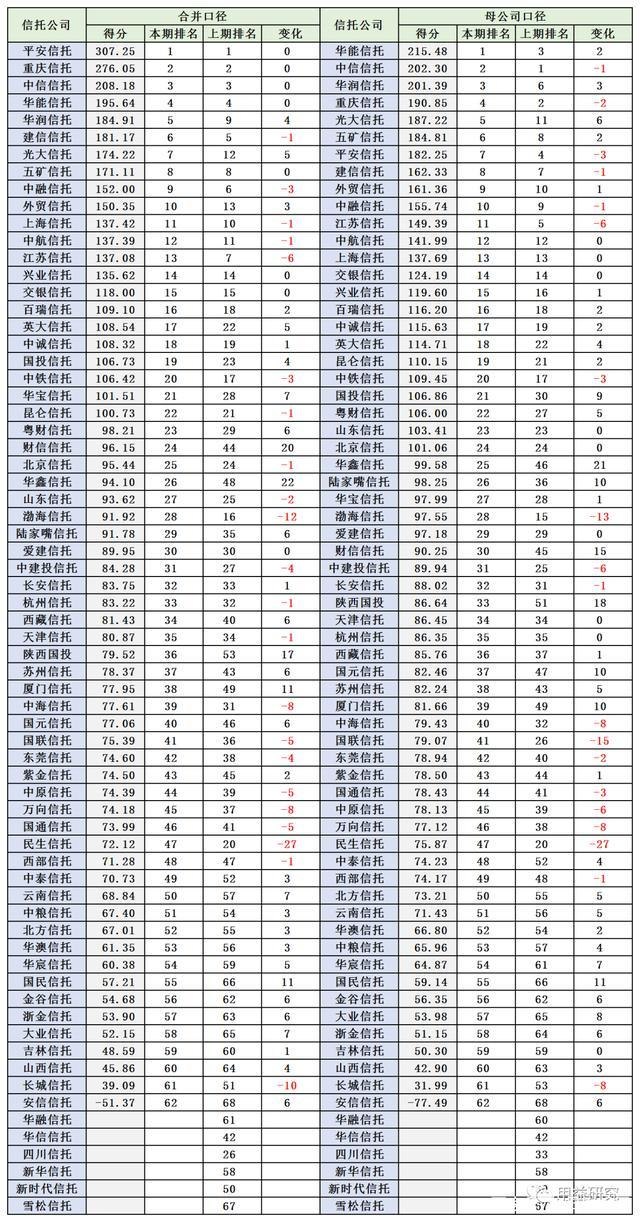 当然,龙生九子,各有不同。62家信托公司中,还有22家综合实力排名出现了下滑,他们的发展蒙上了阴影。