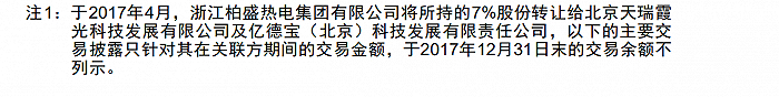界面新闻记者在《17联合农商行二级01债券2017年度报告》找到的一处注释中发现,两家SPV天瑞霞光、亿德宝受让杭州联合银行合计7%股权的交易日期同样是2017年4月,即在基金向合伙企业放款后,徐茂栋控制的两家SPV才拿到标的股权。从时间衔接推测,徐茂栋用从恒天财富募集的资金完成了这笔交易。